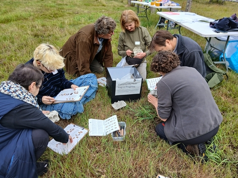 During this session, participants received training on how to set up and operate a moth trap together with the fundamental principles of moth identification. Subsequently, attendees examined specimens trapped collected from the Swan Barn Orchard trap, using various identification guides and benefiting from the expertise of Kate Bannister (Surrey Hills Society) and Christa Emmett (SWT).