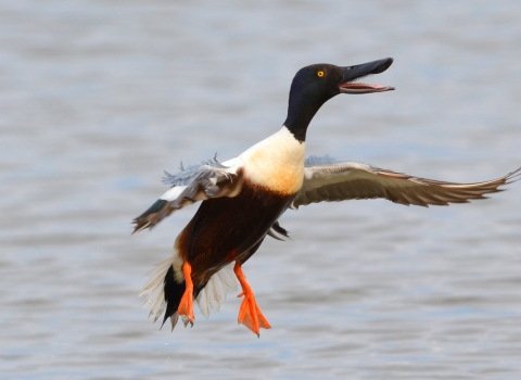 Living up to its name, the shoveler has a large and distinctive shovel-like bill which it uses to feed at the surface of the water.