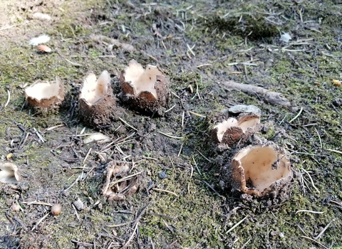 Forming partially buried little crowns in the ground, the cedar cup spends most of its time concealed as a sphere below ground, before bursting through the soil to reveal its star like rays.How to identify