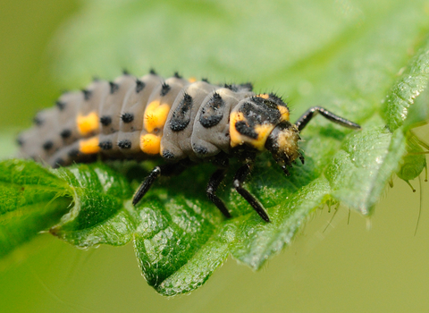 One of our most common ladybirds, the black-on-red markings of the 7-spot ladybird are very familiar. Ladybirds are a gardeners best friend as they eat insects that love to nibble on garden plants! You can encourage them into your garden by putting up a bug box.