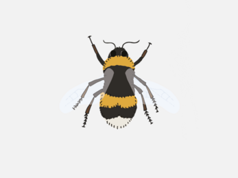 The garden bumblebee is a large, scruffy-looking bee, with a long tongue and face. It has yellow bands at the collar, rear of the thorax and at the first segment of the abdomen, and the tip of the tail is white. It is a relatively large a bumblebee and can be found in a variety of habitats from woodlands to gardens.